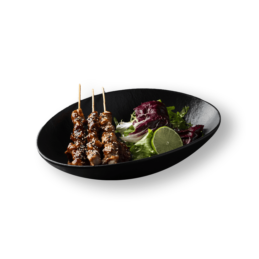 куряче стегно, подається с класичним тяханом і зеленню в азійському соусі