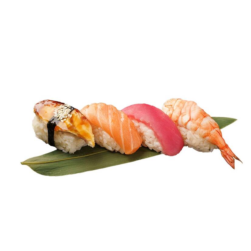 нігірі вугор, нігірі лосось, нігірі тунець, нігірі креветка
