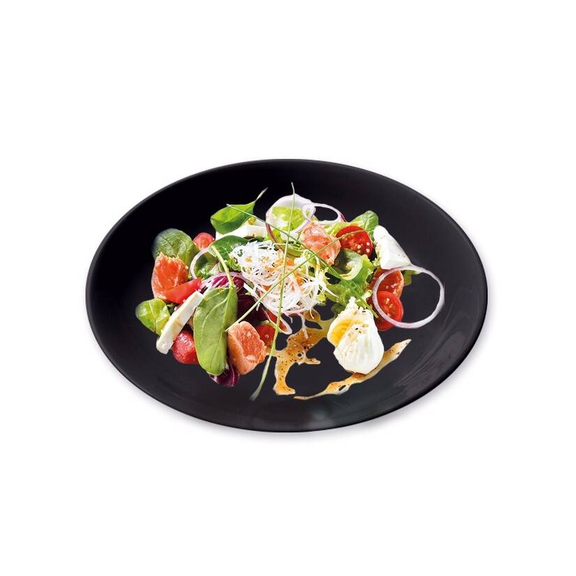 лосось татакі в соєво-кунжутному соусі, філе грейпфрута, сир фета, помідор черрі, помідор мікадо, мікс зелені, дайкон, яйце пашот, цибуля червоний, киноа, ікра масаго