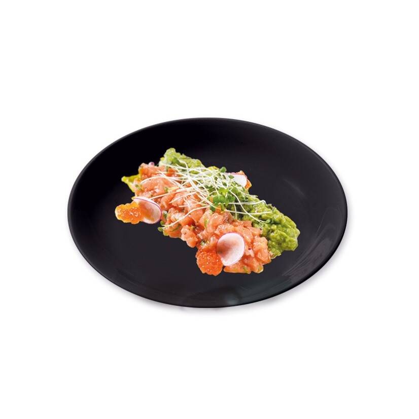 лосось, червона цибуля, кінза, соус fish, соєво-кунжутний соус, гуакамоле, ікра тобіко, редис